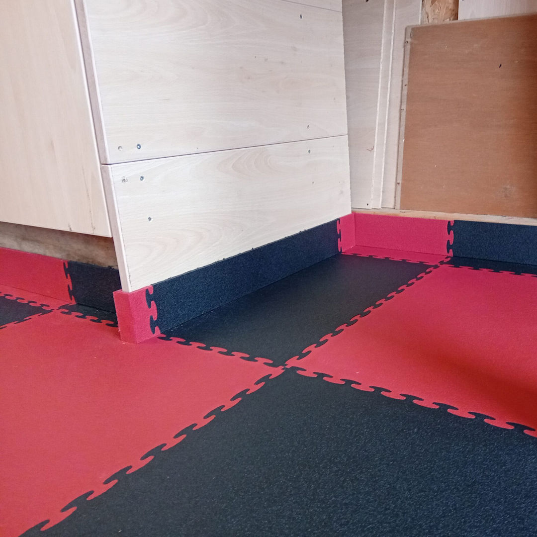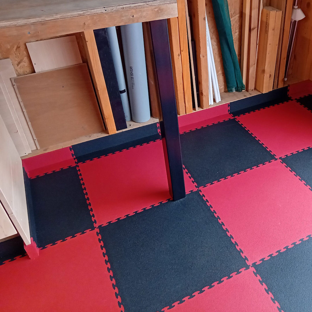 Jason sent pictures of his garage, featuring DURATILE PVC garage floor tiles in black and red, arranged in a classic checkerboard layout. We were hugely impressed by the attention to detail and creative way he cut the integrated skirting around the whole perimeter from the tiles. It’s also one of the business garages we’ve seen with lots of tools and equipment and a workshop area, but everything stored neatly in its place. Jason wins the value of his order for his incredible effort!