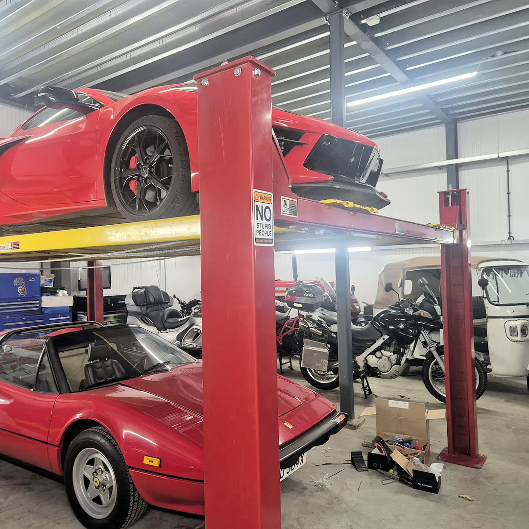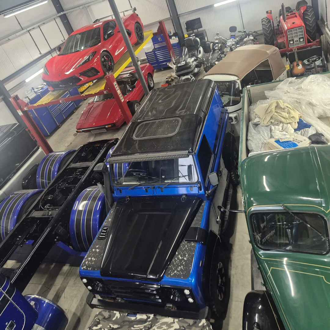 Imported to the UK from the Middle East, this collection includes six cars and two motor bikes, with two of the cars being ‘ex press cars’ – used in a number of publications. Briggs Automotive Company (BAC) Mono; Ferrari 599 GTB (rebuilt after being found full of sand and engine out); McLaren 12C (with swipe doors); Caterham 270R (ex press car that Bob Laishley Caterham CEO had his press photos taken in); Mini GP2 press car; Rubystone Renault Twizy; Landrover Defender 110 (project build); Ant Ansteads Dowsett Classic Cars (mid build); Lotus Emira. Pretty impressive I’m sure you’ll agree!