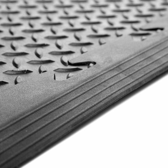 Premium quality interlocking vinyl PVC heavy-duty garage floor tiles by Duramat UK. Made from extremely durable 100% recycled PVC they are 50cm x 50cm x 12mm in size and have an anti-slip checker, diamond, tread plate surface. They are easy to fit (DIY) and can be laid on most flat surfaces with minimal preparation – perfect for garages, workshops, warehouses and industrial environments. Additional edge strips and ramps are available for the perfect finish!