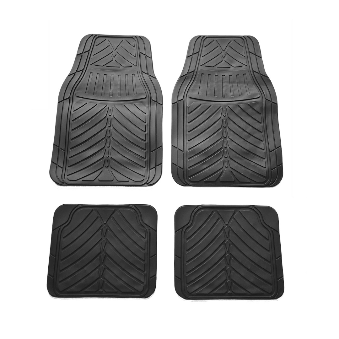 Full set of rubber universal car mats. Size: 69cm x 46cm (front mats) 35cm x 43cm (rear mats)
